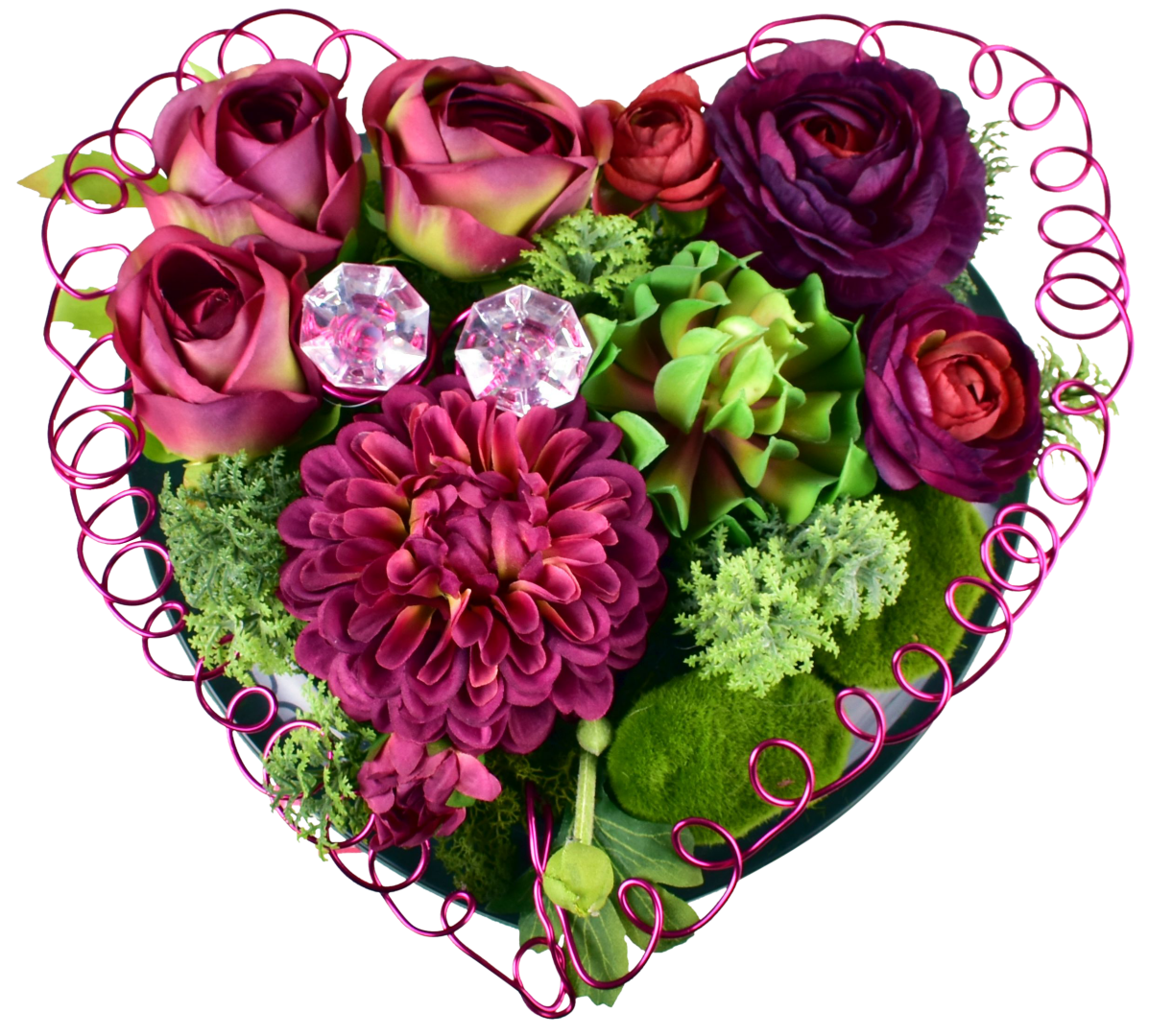Ultra plate, bouton de rose, dalhia, renoncule, echeveria, pierre mousse, diamant, fil laiton, support lesté.