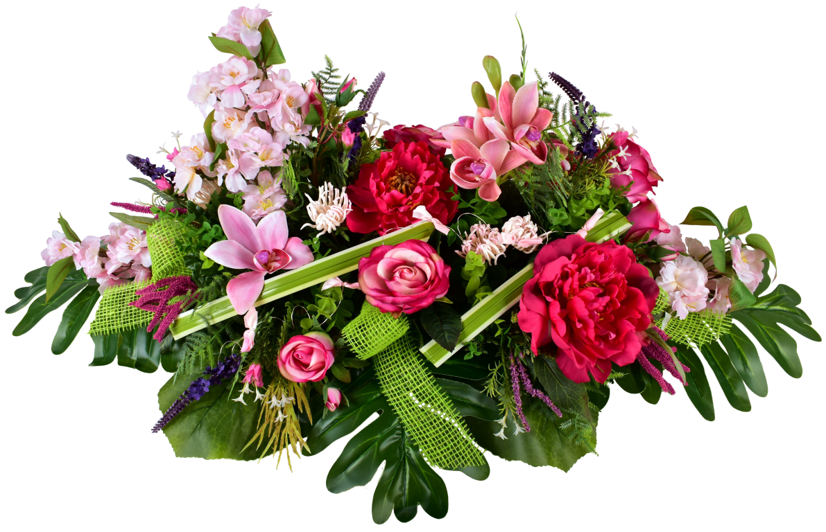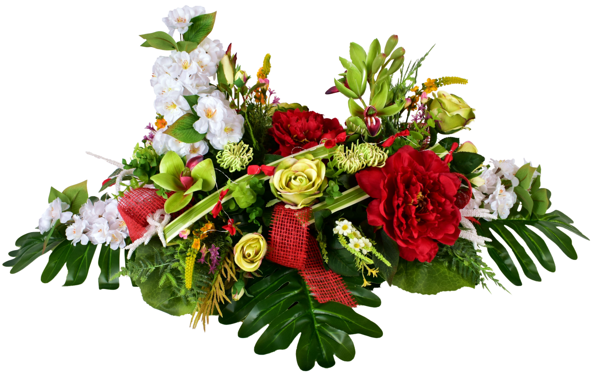 Raquette, rose, pivoine, orchidée. Cerisier, astilbe, shamrock, dracena. Support lesté