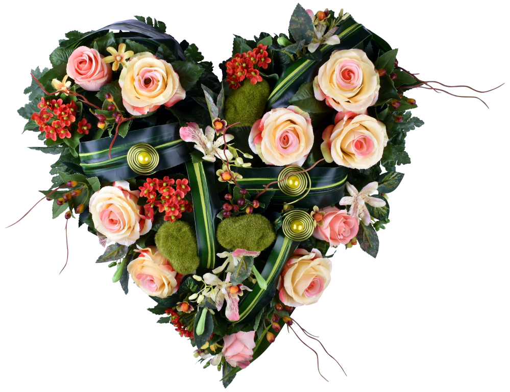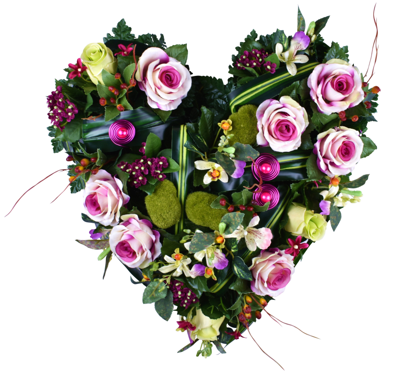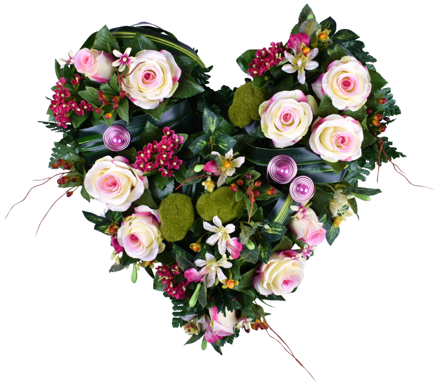Coeur de rose, hortensia, orchidée, pierre mousse, spirale aluminium. Support lesté.