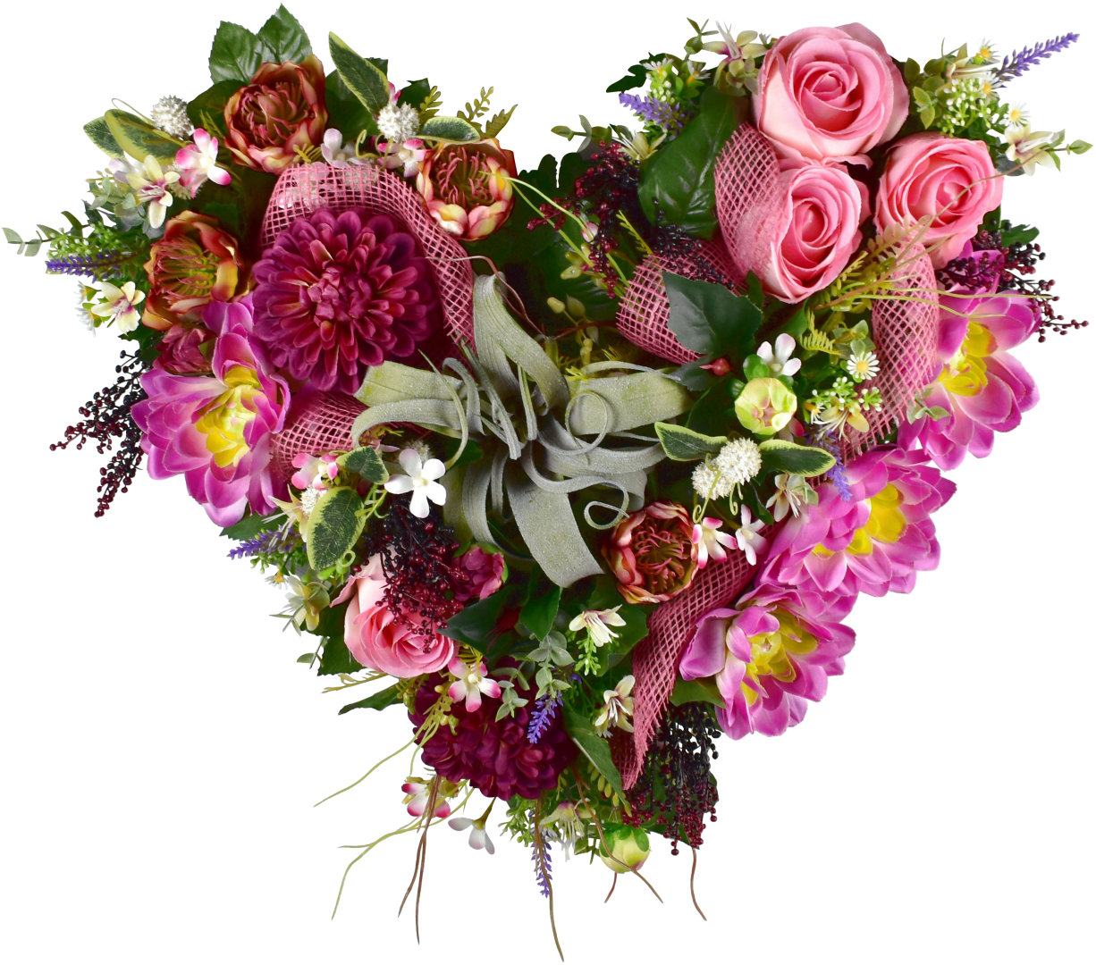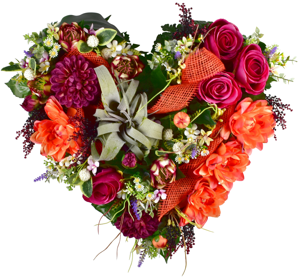 Coeur, rose, protéa, dahlias, tillandsia, baies.