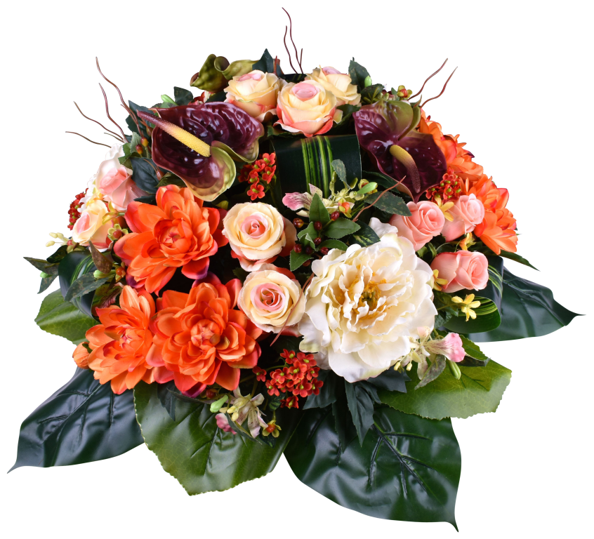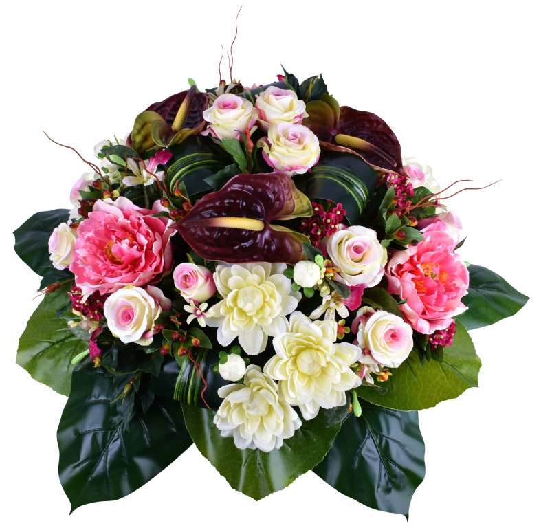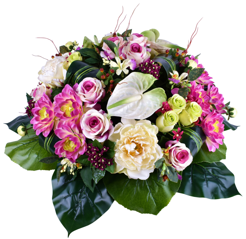 Coussin de dahlia, pivoine, rose, orchidée, anthurium. Support lesté.
