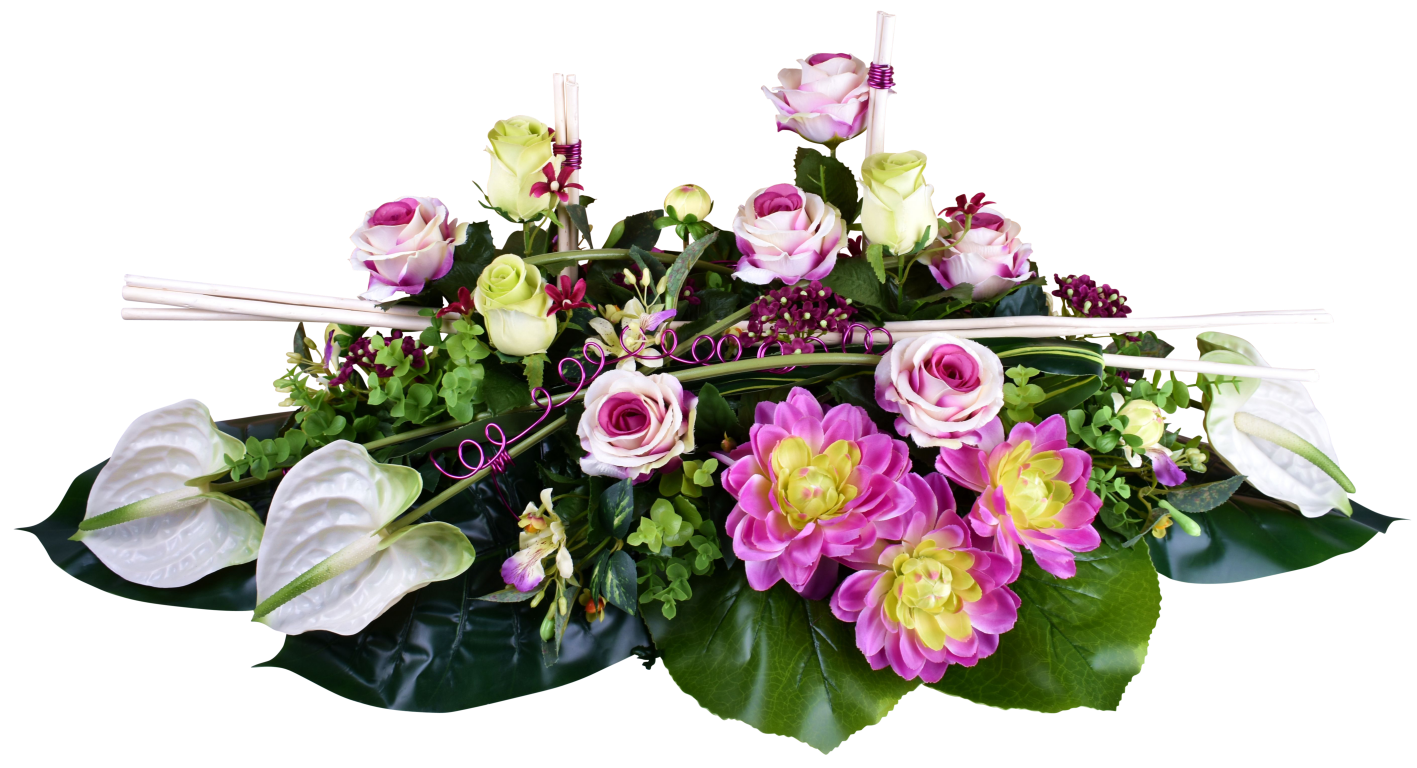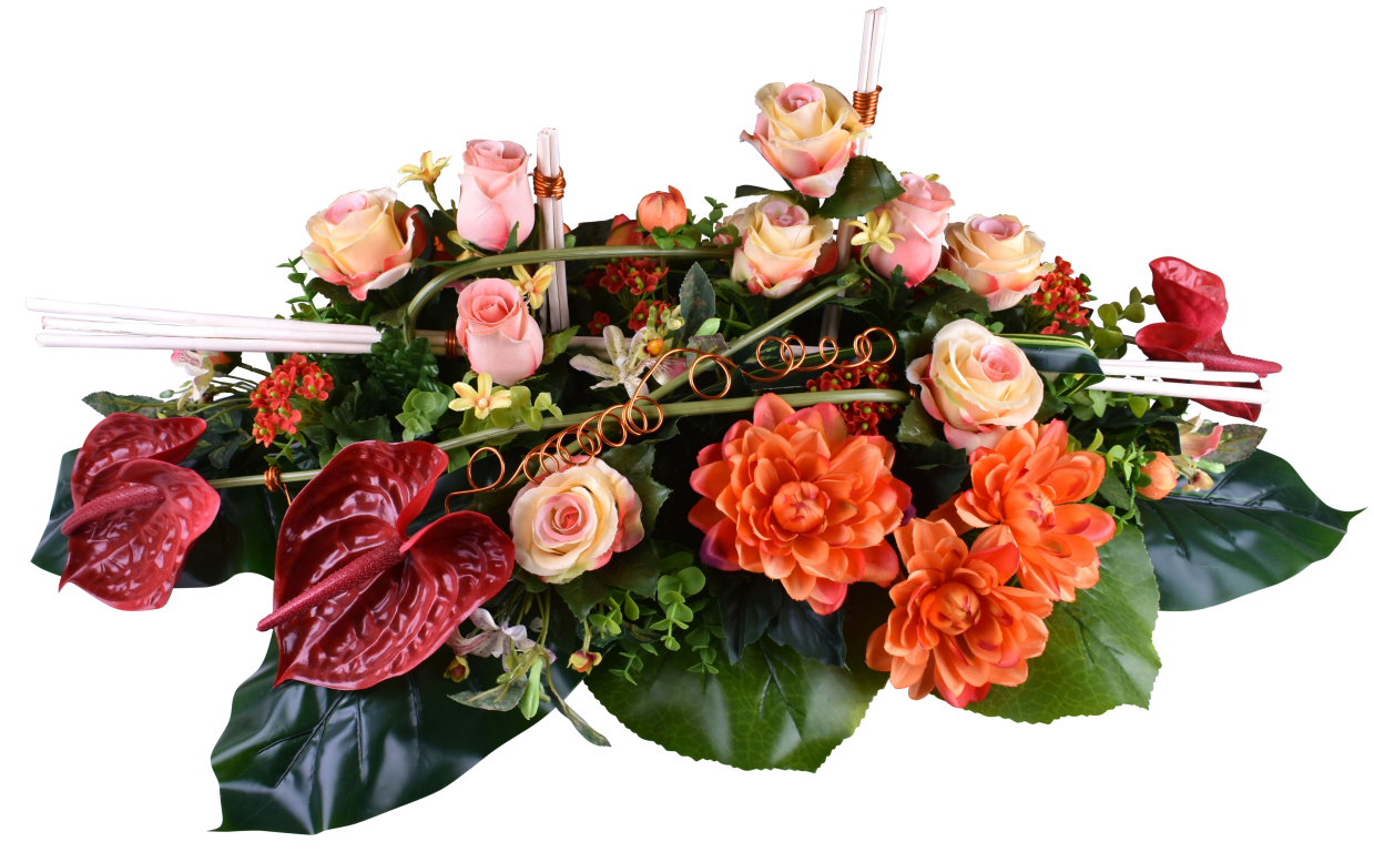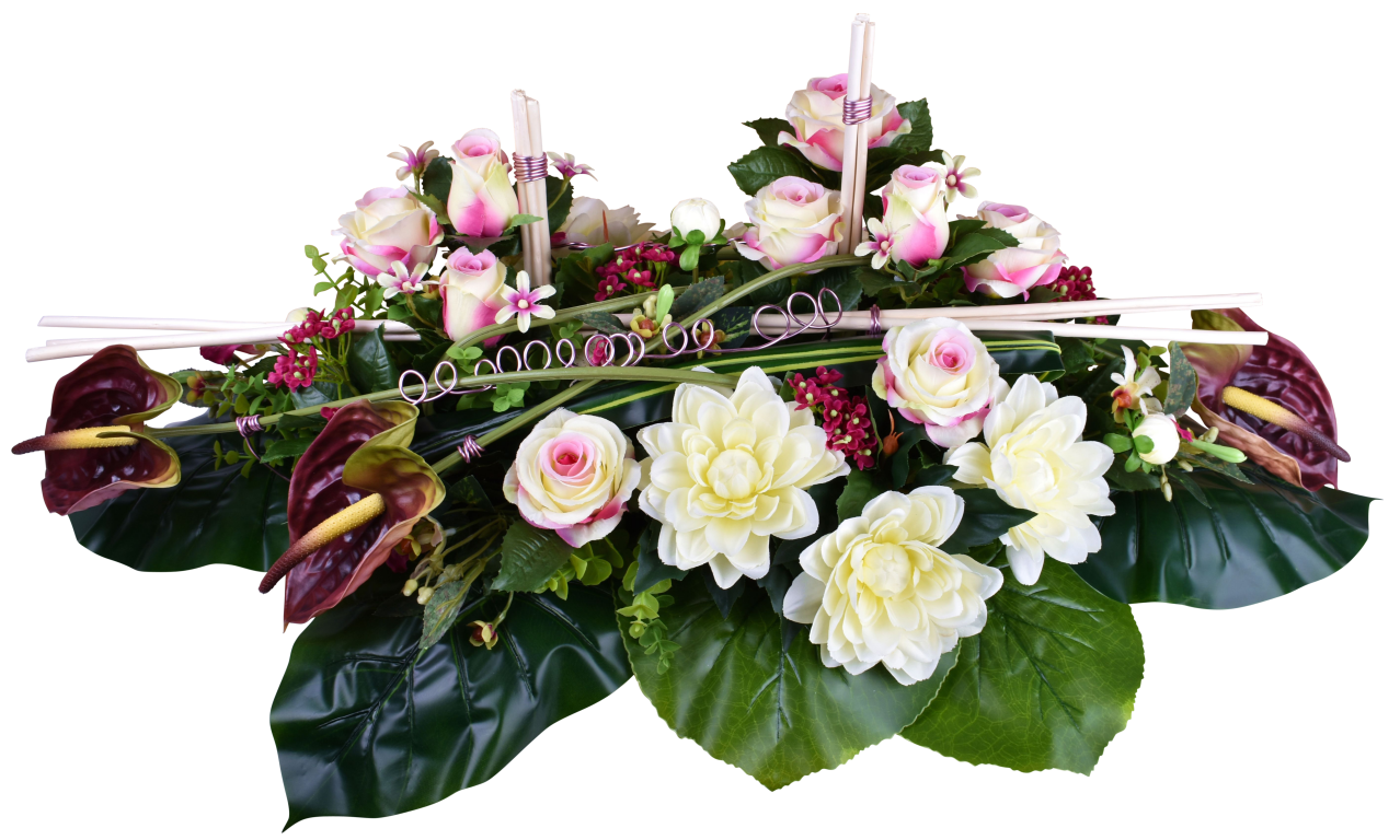 Raquette de rose, dahlia, orchidée, hortensia, bois blanc et fil aluminium. Support lesté.