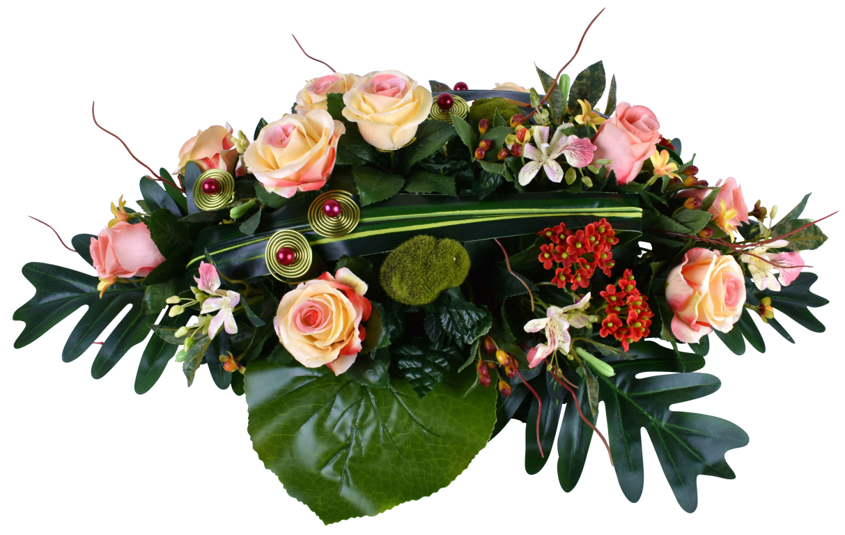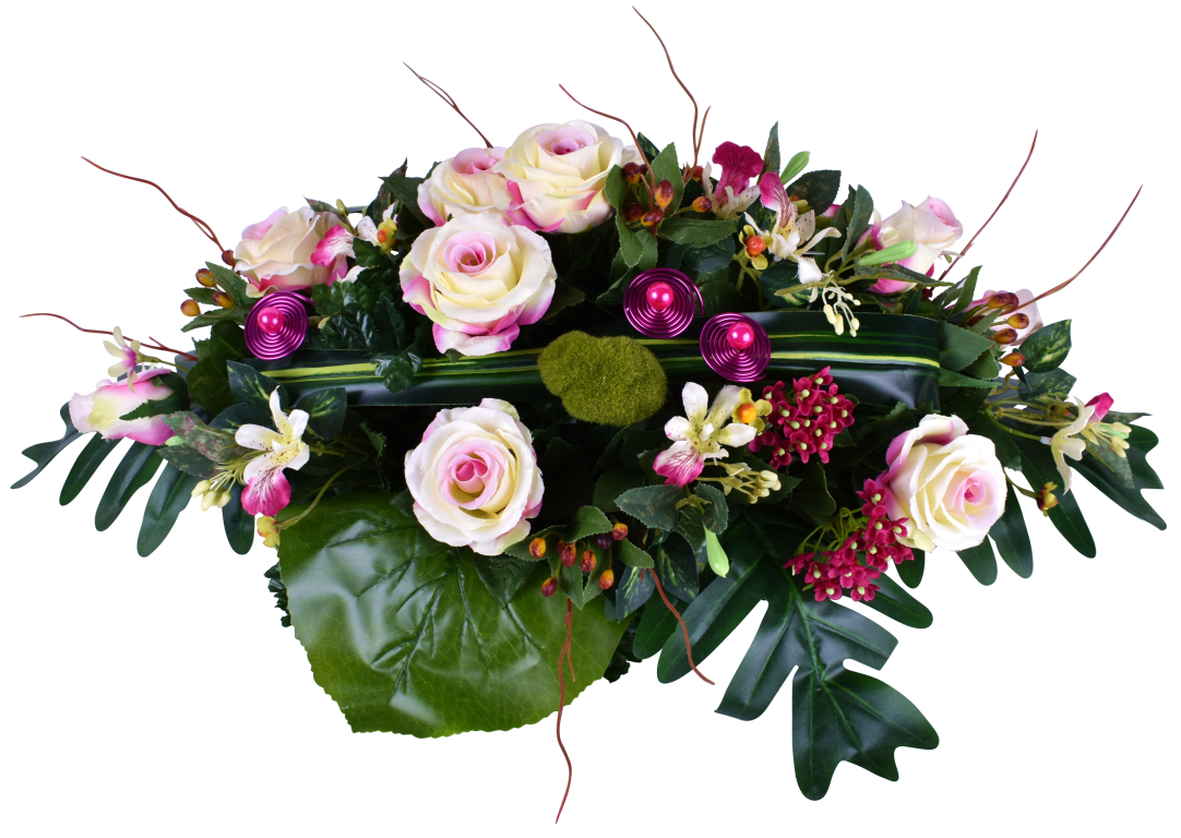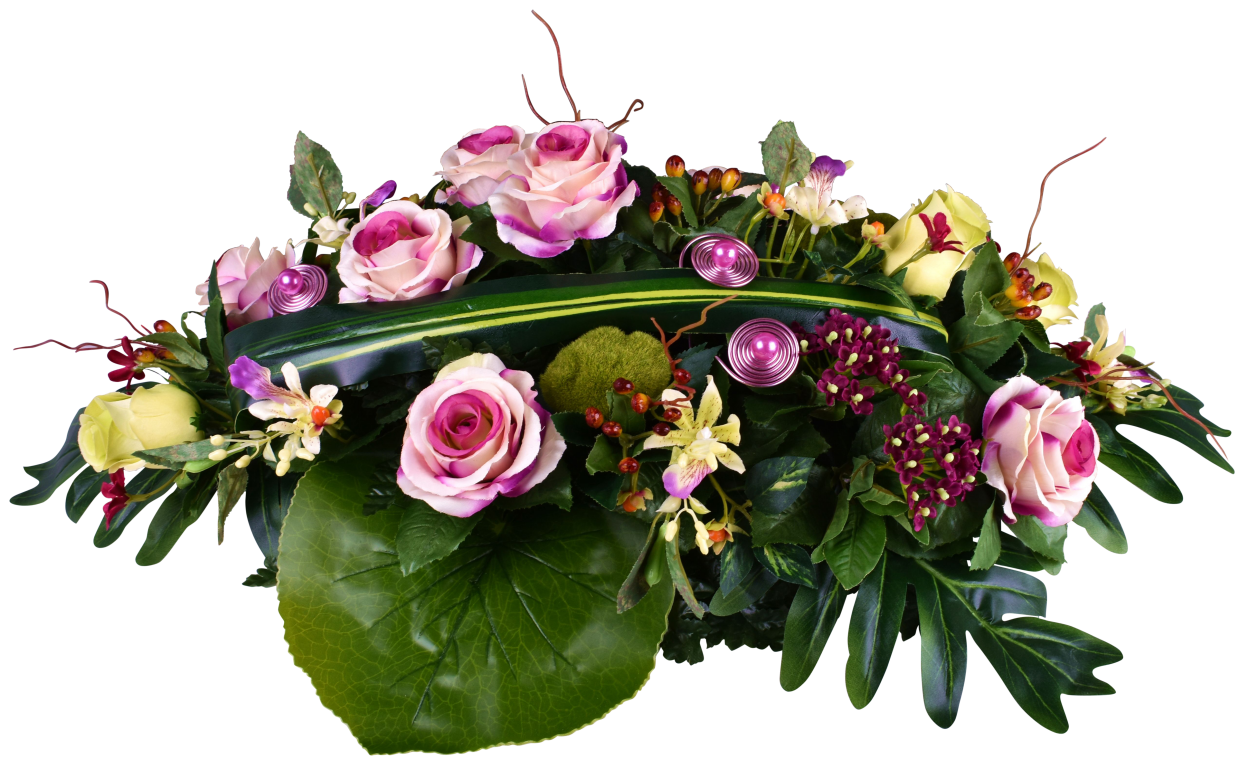 Raquette de rose, pierre mousse, orchidée, hortensia et spirale aluminium. Support lesté.